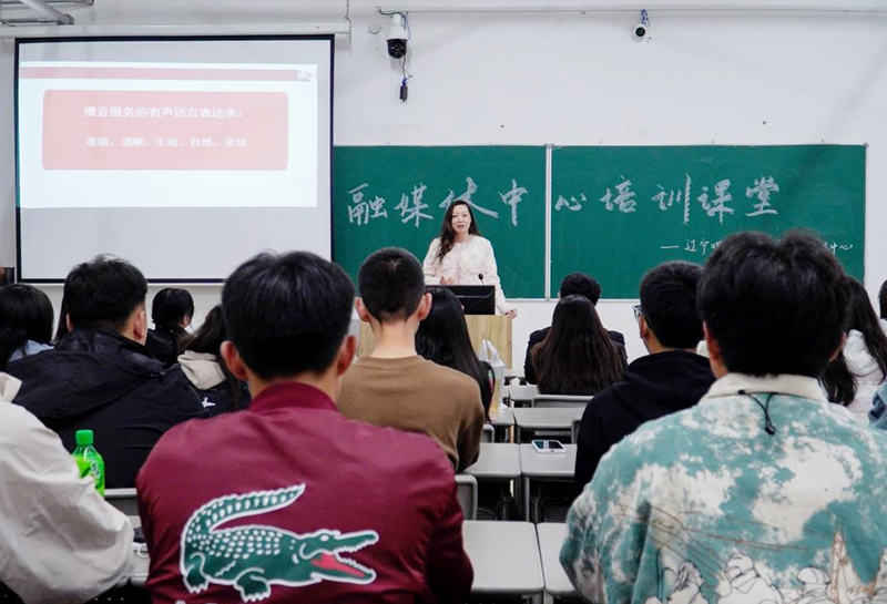 为着眼培育大学生新闻素养,适应新媒体发展需求,10月10日17点30分,融宣社团系列讲座第一讲在辽宁理工职业大学北校区主楼1208室成功举办。旅游学院教师王佳以《新闻播报技巧》为题与在场50余人进行了面对面的深入交流。融媒体中心主任、融宣社团、各学院部分同学们参加。