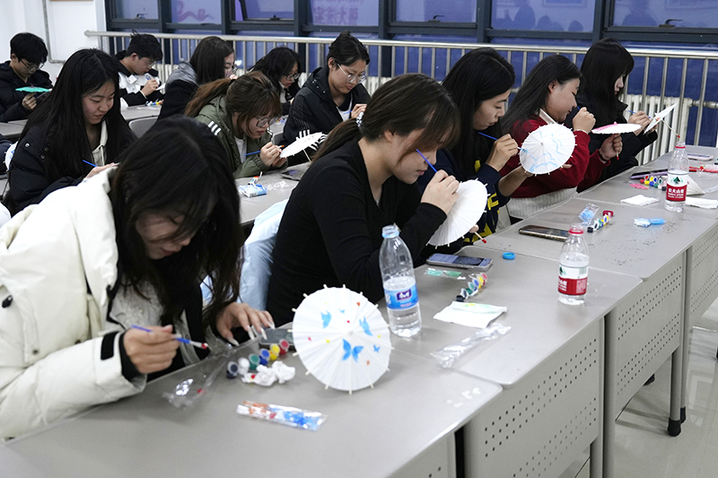 3月5日晚,辽宁理工职业大学1208室奏响着水墨丹青的韵律。融宣社团创新推出“美育+心理”融合教学模式,将美外于“伞”,内融于心,在“心灵之美非遗之韵”主题活动中,让同学们在美的色彩和作品的投射中,心灵得到美的浸润和艺术的熏陶。