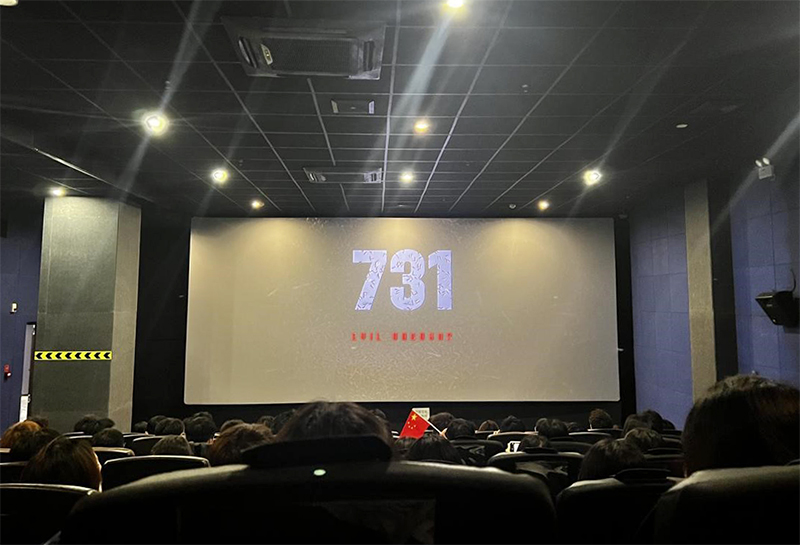 随后,师生共同观看了电影《731》。影片以真实历史为背景,揭露了日本军国主义在中国进行细菌战、活体实验等骇人听闻的罪行。沉浸式的视听体验让历史场景直击心灵,许多学生深受震撼,眼含泪水,深切感受到民族苦难与和平的珍贵。