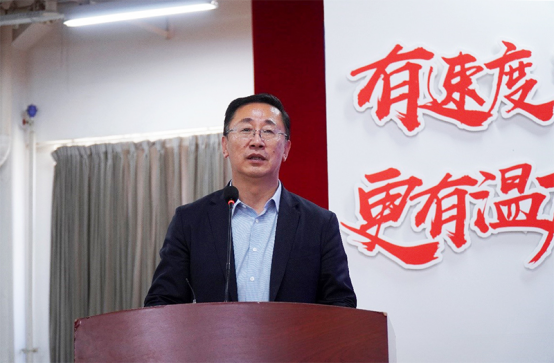 最后,数字商务学院院长吴景泰教授做总结发言。吴院长对京东物流给予学院的信任与支持表示衷心感谢,指出此次现场工程师项目是学院产教融合与校企合作的又一重要里程碑,将为学院现代物流管理专业的发展注入新活力,为学生开拓更广阔的职业前景。他鼓励同学们珍惜这一难得的学习机会,努力提升自身专业素养与实践能力,要敢于面对京东物流未来的机遇与挑战,在未来将成为智慧物流领域卓越的现场工程师,为行业发展贡献自己的力量。