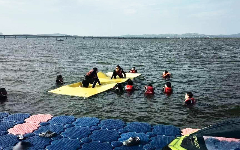 刘慧婷、刘洋两位老师和同学们一起做“熟悉海洋,战胜自己”训练