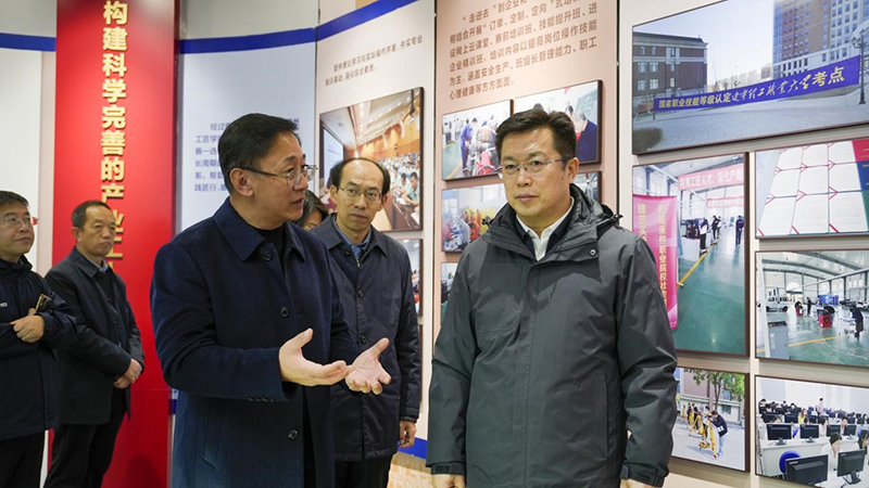 王庆东实地考察了学校智能网联技术实训中心、智能制造生产性实训基地、锦州工匠学院工匠精神展馆、青禾非遗艺术坊等教学与实践场所,认真听取介绍,详细了解学校在人才培养、党建与业务工作深度融合和校园文化建设等方面的情况。