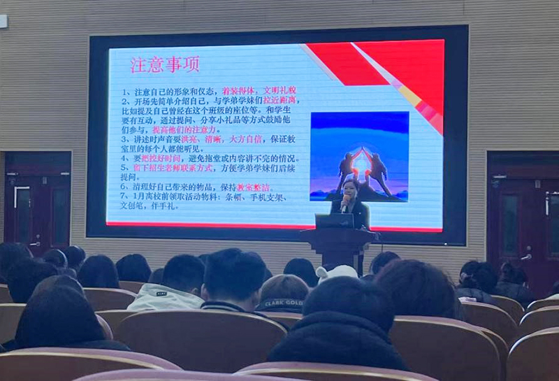 12月10日晚上,辽宁理工职业大学招生宣传处举办了“薪火相传·感恩母校行”寒假社会实践动员大会。招生宣传处处长崔莉芳、副处长杨洋参加了本次动员大会。