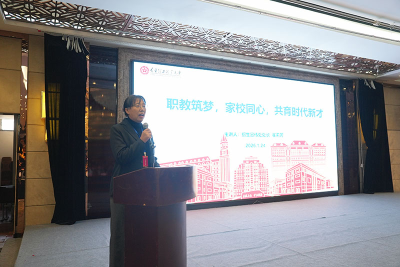 招生宣传处处长崔莉芳围绕国家对职业本科教育的政策导向,结合学校办学特色、发展定位与整体规划作了全面介绍。她通过近年来学校在专业建设、课程改革、校企合作等方面的具体案例,清晰阐述了学校的发展路径与育人模式,帮助家长对学校的教育理念、培养体系和发展前景有了更加系统、深入的了解,进一步增强了家校之间的认同与信心。