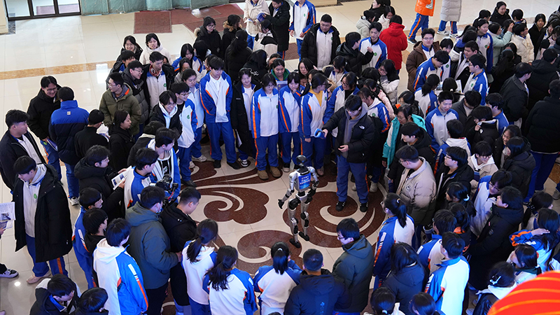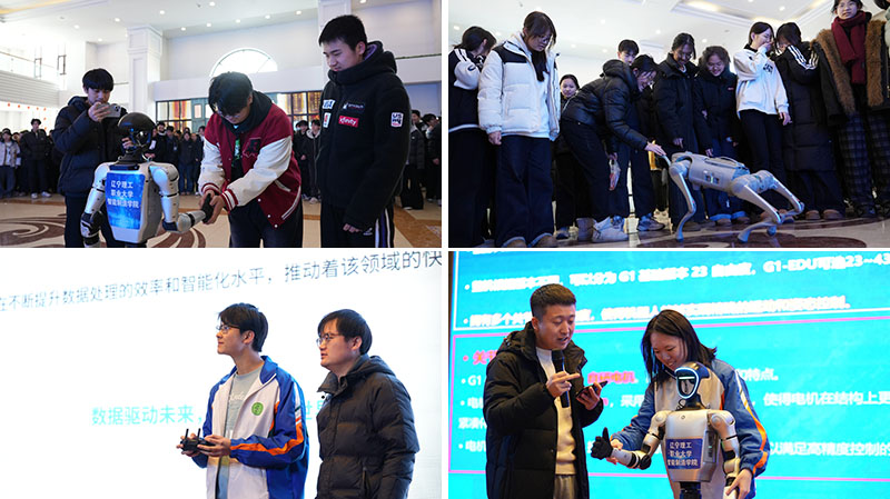 活动当天,辽宁理工职业大学的师生团队带来了多项科技展示项目。在机器狗展示区,机器狗完成了多项指令任务,引发阵阵赞叹;无人机编程体验则让学生们亲自动手,感受代码控制飞行器的乐趣;人形机器人与学生的频频互动成为了焦点,这种新颖的体验不仅带来了欢声笑语,拉近了学生与前沿科技的距离,更在潜移默化中培养了他们的创新思维与实践能力。“这些设备我们平时只在视频里见过,今天能亲手操作真的太兴奋了!”高一学生王同学表示。