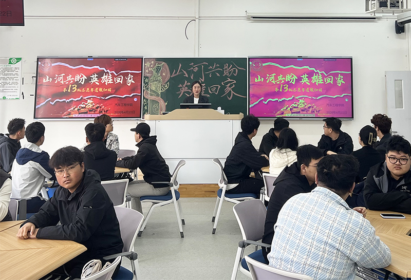 为深入弘扬爱国精神,厚植青年学子家国情怀,传承英雄精神、凝聚奋进力量,汽车工程学院于4月22日在汽车楼205教室开展“山河共盼 英雄回家”主题爱国主义教育活动。本次活动由学院副院长王薇、辅导员老师王吉威与党员干部、学生代表共同参与。