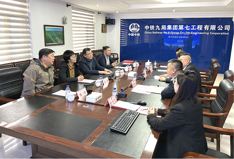 学校副校长袁晓光率产教融合发展处处长吴景泰、建筑工程学院院长孙阳、副院长张岩、专业教研室主任董国强出席;会议由中铁九局集团七公司副总经济师、人力资源部(党委干部部)部长侯福田主持。