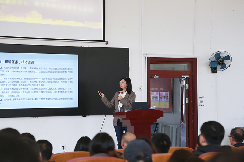 10月20日,应学校邀请,辽宁教育学院教育科研与评估中心副主任高红梅研究员在北校区主楼一楼报告厅作题为“以优质课题研究 赋能职业院校教师专业成长”的专题学术报告。董事长文秋、党委书记洪儒、党委副书记蔡红武、副校长孟庆男、时力华、张波、陈卓、车龙浩、袁久文、洪子玉以及相关部门领导和全体教师参加了报告会,报告会由科研处处长刘连利主持。
