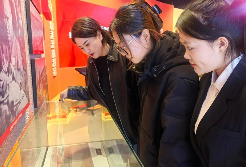 走进纪念馆,仿佛推开了一扇通往历史的门。赵九而书记、马丽老师站在一幅幅老照片、一件件旧文物前,放慢脚步、压低声音,为师生们详细讲述塔山阻击战的峥嵘过往——那些没有高山依托、全凭血肉之躯筑起“长城”的日夜,那些“人在阵地在”的誓言,那些为了胜利义无反顾的身影……讲解中,既有对历史细节的精准还原,更有教师对坚守与担当的深切感悟;同学们屏息聆听,时而驻足凝视展柜里的旧水壶、泛黄的战地书信,时而沉思,眼中满是崇敬与动容。大家知道,这些刻着岁月痕迹的物件,不仅是历史的见证,更是今天最珍贵的精神教材。