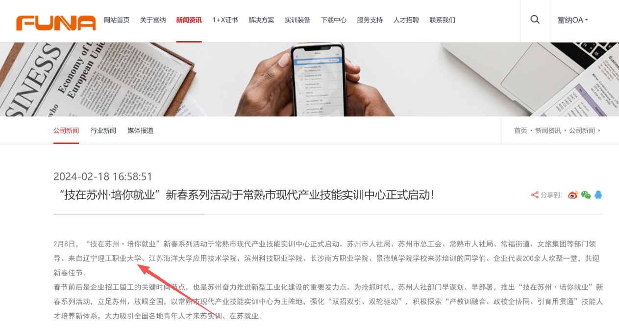 辽宁理工职业大学与苏州富纳艾尔科技有限公司深度融合校企资源,于2019年7月联合成立“富纳智能制造学院”,并在2023年9月升级共建富纳智能制造产业学院。产业学院以智能制造领域人才培养为核心,践行“校企合作+技术研发+人才服务”三位一体发展模式,实行管委会主任负责制,在专业建设、教学资源开发、实训基地共建、师资队伍培育、实习就业保障等方面开展全方位合作,打通学校教育与产业需求的“最后一公里”,为智能制造行业培养高素质技术技能型人才。