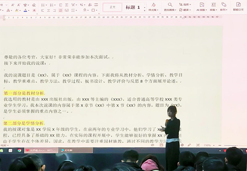 为实现精准化、分学科指导,本次培训特别邀请三位经验丰富的教学骨干担任主讲嘉宾。信息工程学院赵艳茹老师聚焦理工类学科特点,围绕教学设计的逻辑性、实验教学的规范性、教学案例融入技巧等核心要点,结合测试评分标准拆解试讲流程;数字商务学院苏琬淇老师立足人文类课程特色,围绕说课全流程分享自己的经验。从学情分析、理论与实践结合、课程思政元素挖掘等方面,分享了教案撰写与课堂互动的实用策略;素质教育教研部田野老师立足社科类学科属性,重点讲解了教学语言表达、情感价值引领、说课细节等方面,通过优秀试讲案例剖析常见问题,给出改进建议。三位嘉宾的讲解兼具理论高度与实操性,覆盖不同学科测试核心需求,让参训教师受益匪浅。