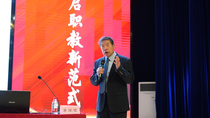 上午的培训以“AI赋能教学范式革新”为主题,共设两场专题讲座。首场讲座由享受国务院特殊津贴专家、原渤海大学副校长、二级教授单凤儒主讲《AI助力职业本科教学范式革命》。作为国家级教学成果特等奖获得者,单教授系统阐释了“三大颠覆”改革路径:突破教师主导的传统课堂模式,建构学生自治的泛在式学习生态;打破标准化学科内容局限,建立开放式“哑铃型”能力素养体系;革新碎片化实训现状,打造“AI+训练程序”系统化解决方案,为职业本科教学改革提供了清晰路径与实践框架。