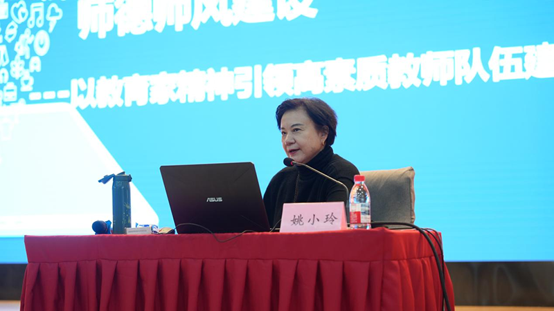 下午的师德师风建设专场邀请全国师德先进个人、北京市高等学校教学名师、北京航空航天大学教授、博导姚小玲主讲《师德师风建设——以教育家精神引领高素质教师队伍建设》。姚教授结合理论分析与典型案例,深入阐释了教育家精神与高素质教师队伍建设的内在关联,系统提出了培育教育家精神的具体路径与对策,为教师队伍思想政治建设提供了理论支撑与实践指引。