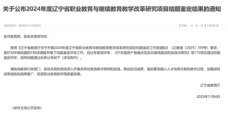 这些项目的顺利结题,是学校持续推进教学改革、深化产教融合的生动体现,不仅为学校教学研究工作积累了宝贵经验,也为辽宁省职业教育教学改革提供了有益参考。学校将以此为新起点,继续深耕职业教育教学改革,推动更多研究成果落地见效,为培养高素质技术技能人才、服务区域经济社会发展贡献更大力量。