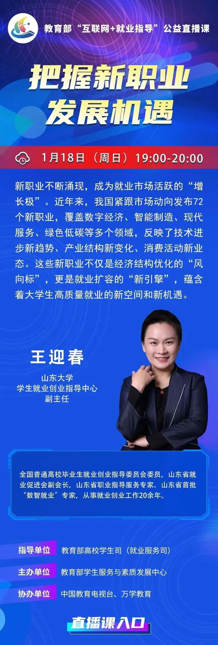 请各学院积极宣传和推送,可组织全体毕业生和在校生观看,有针对性和目标性地规划自己的职业发展方向和职业选择,实现顺利就业。具体介绍和直播入口如下: