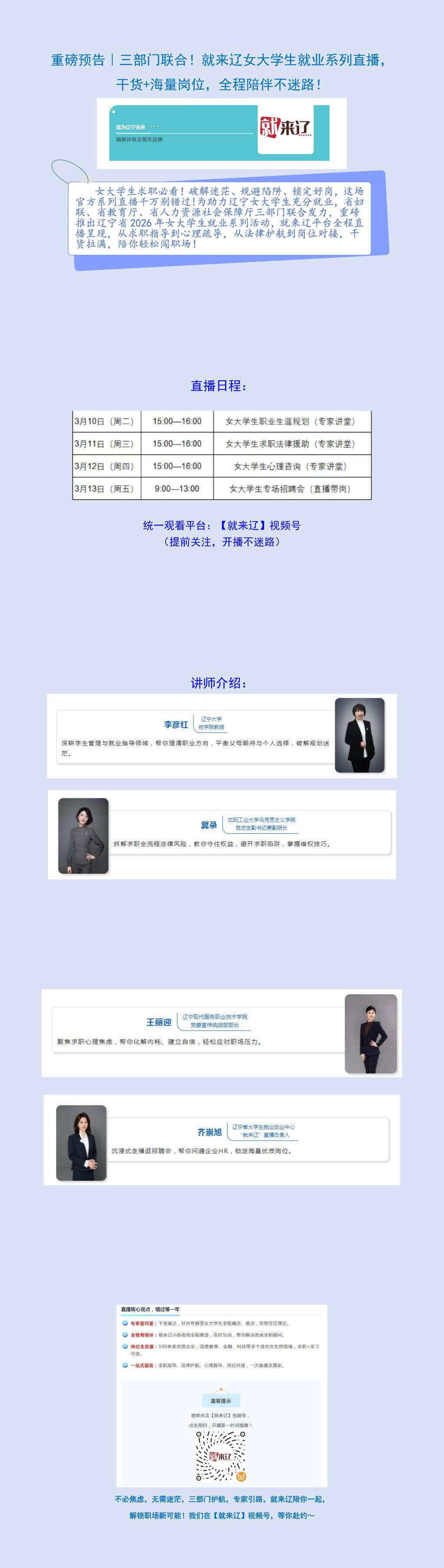 重磅预告|三部门联合!就来辽女大学生就业系列直播, 干货+海量岗位,全程陪伴不迷路!