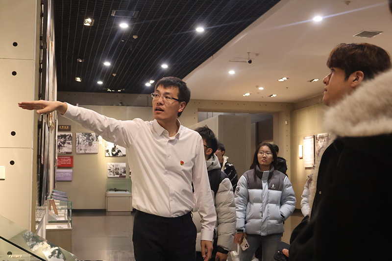 活动伊始,在马克思主义学院10位专任教师的带领和馆内讲解员的配合下,同学们依次参观了辽沈战役纪念馆序厅、战史馆、支前馆、英烈馆和全景画馆等核心展区。在现场教学过程中,教师们创新采用“边走边讲、定点深讲、集中研讨”的多元互动方式,将教材中的理论知识与鲜活的历史场景有机衔接,在真实的历史情境中讲授理论、诠释精神,使抽象的思政内容具象化、生动化,有效实现了历史叙事与思想引领的深度融合。