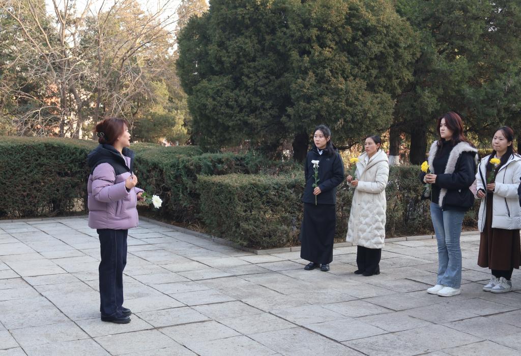 随后,全体师生怀着崇敬的心情,手持鲜花,缓步来到烈士纪念区,庄严肃穆地祭扫朱瑞将军、梁士英烈士和张士毅烈士墓。大家整齐列队,默哀致敬,敬献鲜花,深切缅怀为民族独立和人民解放事业英勇献身的革命先烈。一朵朵白菊寄托着对英雄的无限追思,也象征着红色精神在新时代青年心中的赓续传承。