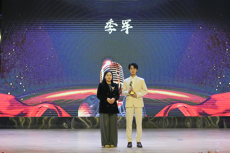招生宣传处老师曹蕴韬、学生处老师那鹏为校园十佳主持人颁奖