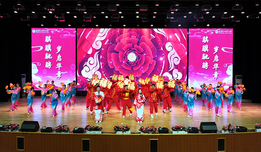金马献瑞启新程,福韵满堂迎佳节。12月29日晚,北校区文体馆灯火璀璨、暖意融融,一派喜庆祥和的新春图景徐徐铺展,浓浓的年味与中华优秀传统文化、辽西地方特色文化、非遗文化的醇厚底蕴交织相融,“骐骥驰骋 岁启华章”辽宁理工职业大学2026年元旦晚会在此盛大上演。本场晚会以“文化铸魂、年味传情”为内核,将秧歌舞、醒狮等中华传统艺术、东北风情等地方特色文化巧妙融入节目编排,让大型文体活动成为文化传承的生动载体。在辞旧迎新的温馨氛围中,为师生呈现一场兼具审美质感与文化厚度的跨年盛宴。学校党委书记兼政府督导专员王宏利、校长王忠诚、党委副书记蔡红武、副校长陈卓、副校长时力华、副校长谭英杰,各职能处室负责人、各学院师生代表到场观看演出。