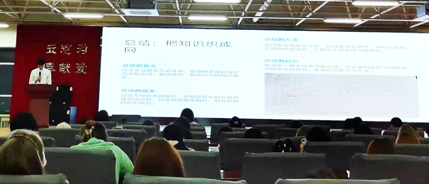 交流会上,先进个人代表杨然然、曲英贺、郭麒智、于林弘、张欣怡依次登台分享。他们立足自身在学业成绩、技能竞赛等领域的突出经历,用朴实真挚的语言、具体鲜活的案例,从时间规划、高效学习技巧、竞赛备赛策略、学习心态调节等多个维度,毫无保留地倾授成长秘籍与实战经验,让在场学子收获满满。