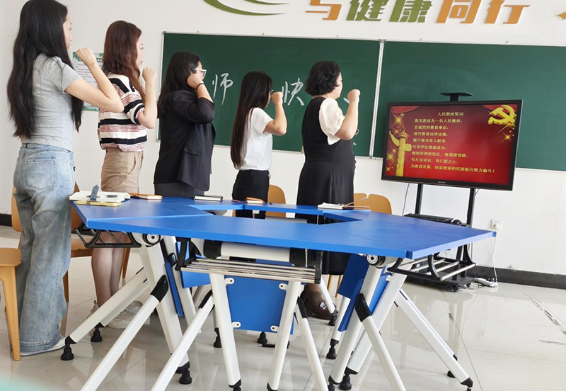 会议第六项议程是全体教师宣誓,王主任领誓,全体教师铿锵有力地进行了“人民教师誓词”宣誓。