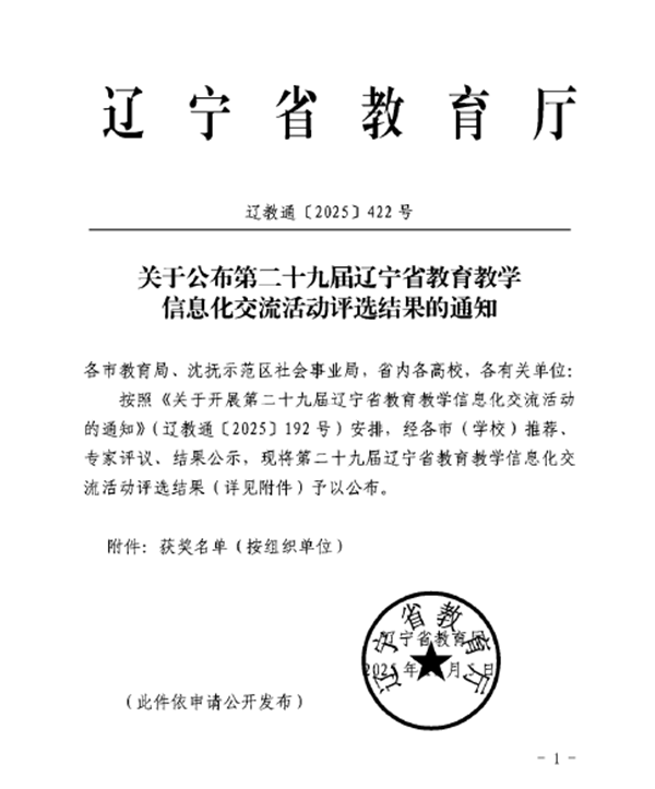 近日,辽宁省教育厅公布第二十九届辽宁省教育教学信息化交流活动评选结果,辽宁理工职业大学凭借扎实的教学信息化建设成果与创新实践,斩获6项奖项,其中一等奖2项、二等奖1项、三等奖3项,充分彰显学校在教育教学数智化转型中的成果。