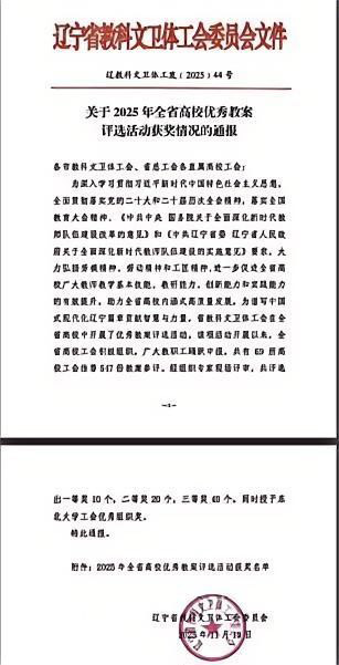近日,辽宁省教科文卫体工会委员会发布《关于2025年全省高校优秀教案评选活动获奖情况的通报》,我校教师王翠翠的教案《结构平法标识》荣获三等奖。