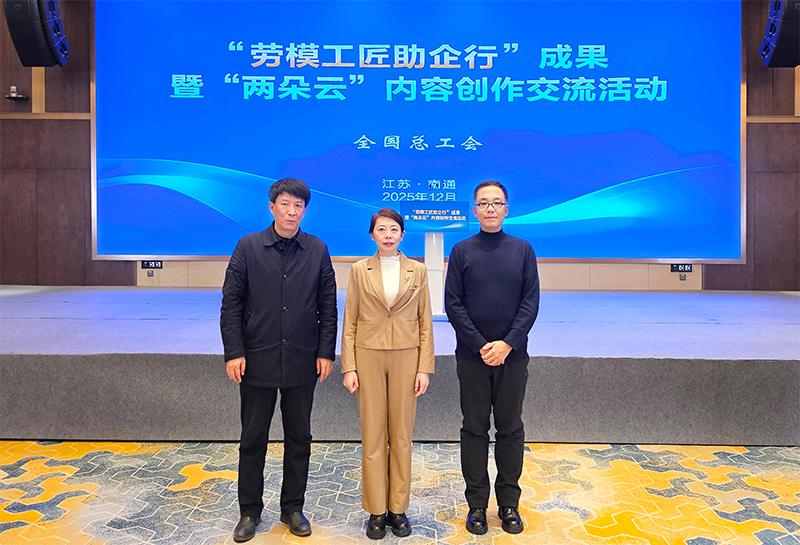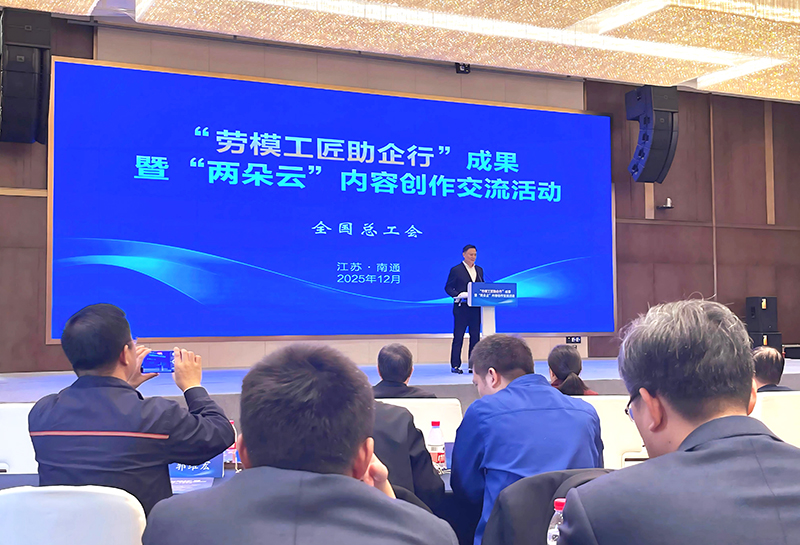 12月18日,由中华全国总工会主办的“劳模工匠助企行”成果暨“两朵云”内容创作交流活动在江苏南通成功举行。全国总工会党组书记、副主席、书记处第一书记徐留平,工业和信息化部中小企业局副局长牟淑慧,南通市委书记、市人大常委会主任吴新明出席活动并讲话。活动由全国总工会副主席、书记处书记、党组成员马璐主持。