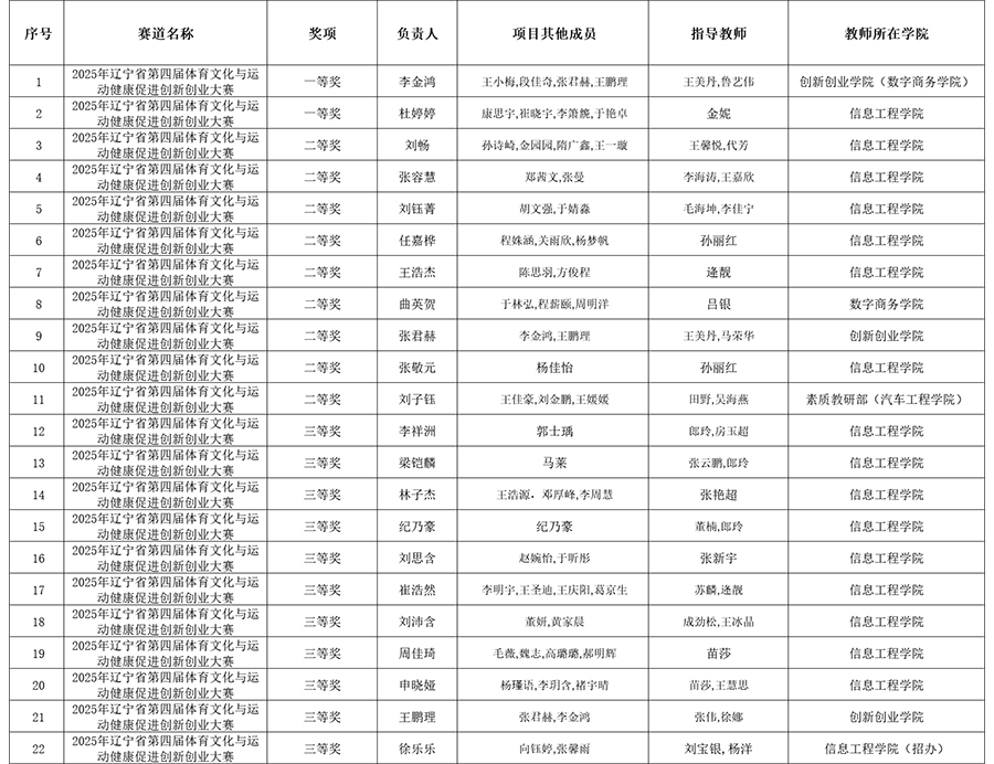 此次赛事取得的丰硕成果,是学校创新创业教育与体育教育建设深度融合的生动实践。未来,学校将以此次获奖为契机,进一步优化体育教育等相关课程体系,紧扣辽宁文体融合发展需求,持续搭建更高水平的体育创新创业实践平台,着力培养更多兼具文化传承意识、创新思维与实践能力的高素质技能人才,为服务健康中国战略实施、助力辽宁全面振兴新突破贡献力量。