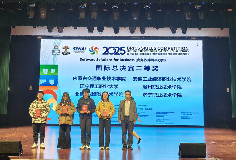 金砖国家职业技能大赛商务软件解决方案赛项国际总决赛在青岛幼儿师范高等专科学校成功举行。本次大赛汇聚了来自全国28个省(自治区、直辖市)以及海外3个国家的58支参赛队伍参赛。经过6小时的激烈角逐,我校信息工程学院软件工程技术专业的段永琳同学凭借出色的表现荣获国际总决赛二等奖。指导老师苏麟荣获优秀指导专家证书。