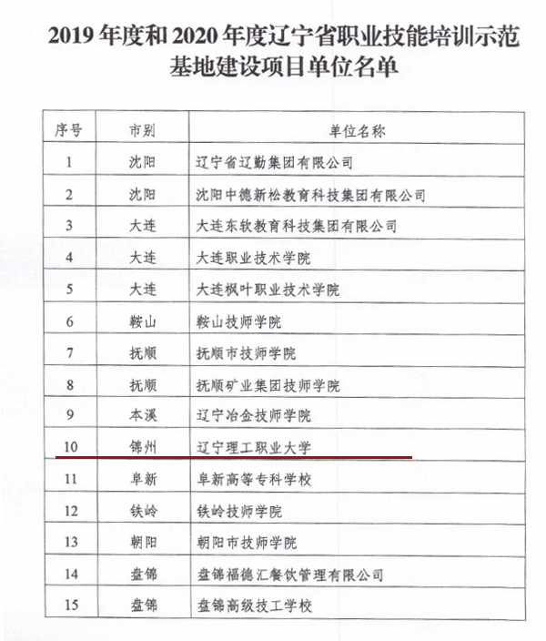 附件1:关于公布2019年度和2020年度辽宁省职业技能培训示范基地建设项目单位的通知